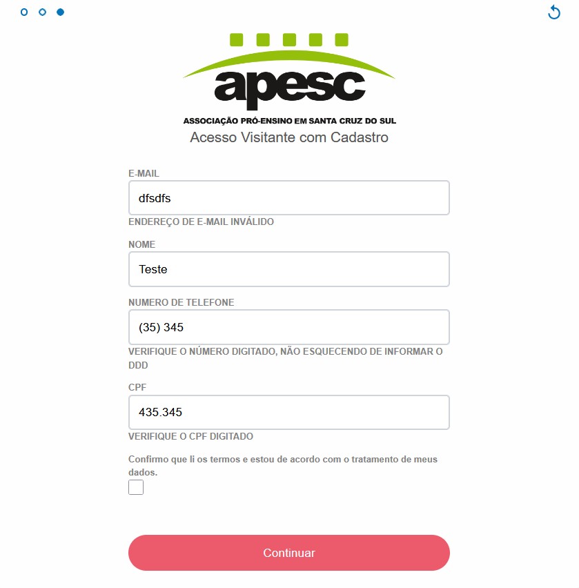 Acesso Visitante via Cadastro